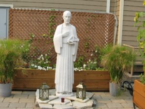 Our garden is a wonderful place of prayer and welcome. The full Rosary is laid out along the sidewalk, with stepping stones for each Our