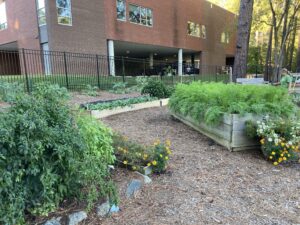 We have greenhouses, vegetable, herb, rain, and pollinator gardens that we use for teaching and as habitat for native species of plants and animals.