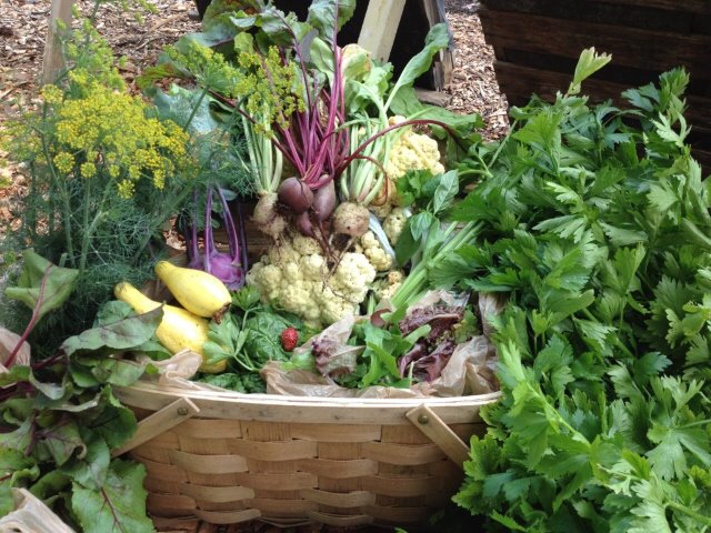 Summer: tomatoes, eggplant, peppers, cucumbers, squash, potatoes, sweet potatoes, okra, bush beans, basil, parsley, sage, oregano