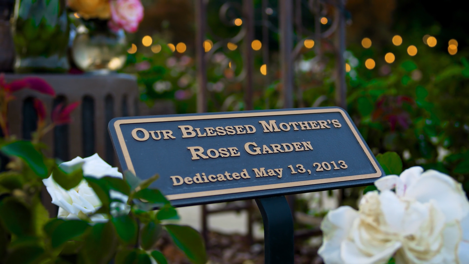 “Our Blessed Mother’s Rose Garden” is primarily a garden of over 550 rose bushes and 475 species of roses. These rose bushes have been donated by people in honor or memory of loved ones. Each rose bush has a marker with the name of the rose, who donated it and who it is in honor or memory of. We also have many other plants and trees of various species and types, such as maple trees, Japanese maples, azaleas, camillas, dogwoods and hydranges, just to name a few. The garden is spread over about one acre with many trails, benches, tables, arches, fountains and more. We also have Sycamore Trail which takes you through a wooded area of Sycamore and Oak trees with a variety of shade loving plants and shrubs. This Garden is not only a place to enjoy the beauty of God’s creation, but also a place of prayer, reflection and meditation.