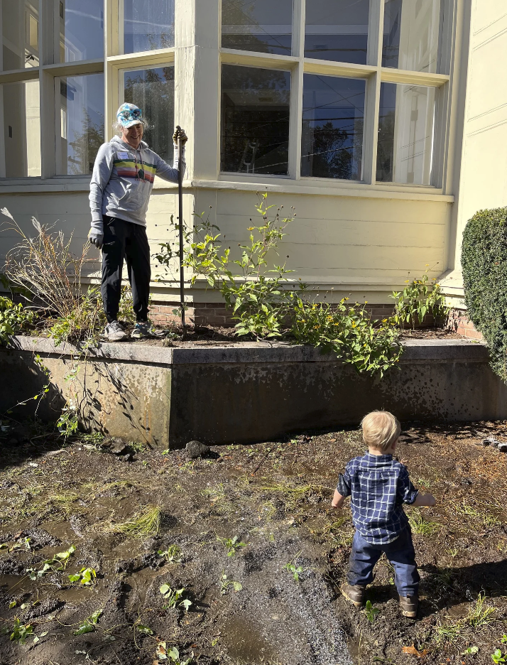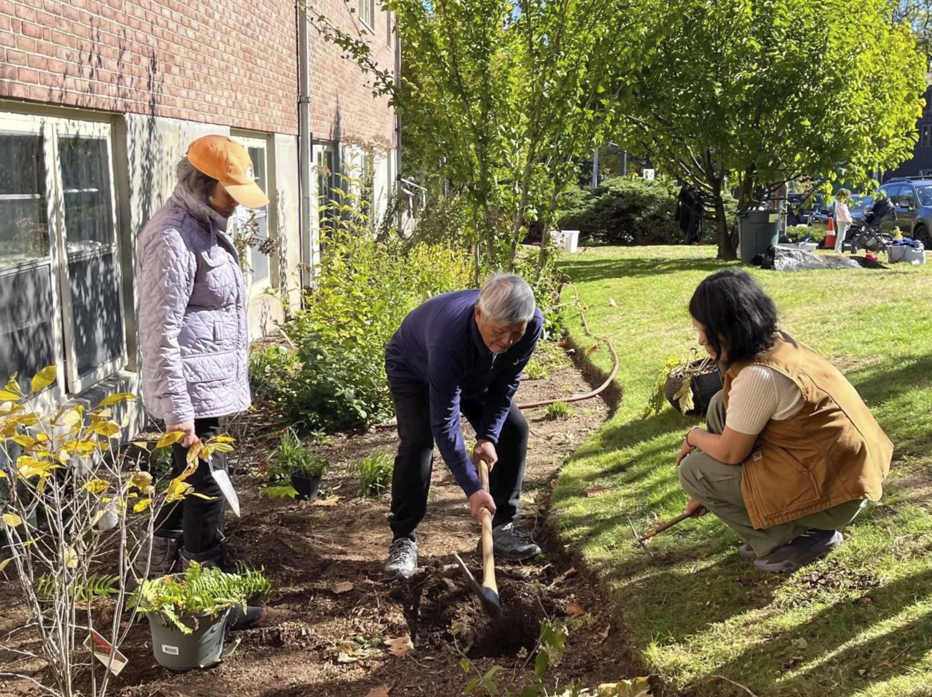 The replacement plantings have been donated and planted by parishioners and participants from the local community. Small amounts of compost are added as needed. We do not used herbicides or pesticides and parishioners use only organic methods. The plants that are removed are stored in a hügelkultur berm near the base of the hill. We are currently watering and weeding the plantings with the plan to cut back on water over the next year. All new plantings are chosen to be self sustaining by the third year. We are prepared to water in the event of severe drought, but they were chosen to survive on their own. We will continue weeding as required but hope that as the natives fill in they will outcompete undesirable plants.