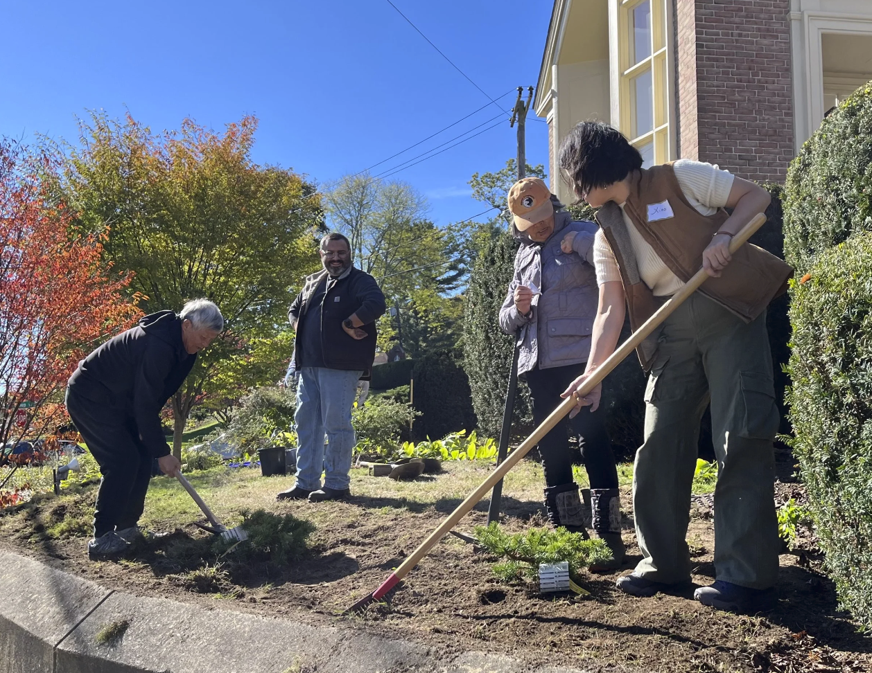 Parishioners have directly supported the conversion of 3,000 sf of land that provided little benefit to local pollinators or wildlife and was full of invasive plants including a canopy of Norway Maples and Tree of Heaven. The understory was filled with Burning Bush, Amur Honeysuckle, vinca and other aggressive plants. It is our practices to fill areas when we remove invasive plants. There has been an incredible outpouring of native plants (see above), mostly locally cultivated in parishioner's home gardens. These seem to be thriving, other than when they are cut short by wildlife.