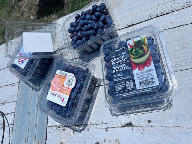 Tomatoes, peppers, green beans, peas, potatoes, onions, garlic, blueberries, zucchini, summer and winter squash, pumpkins, and eggplant as well as asparagus.
