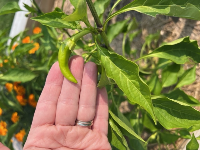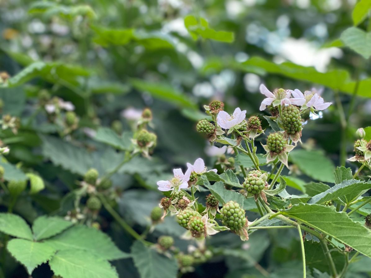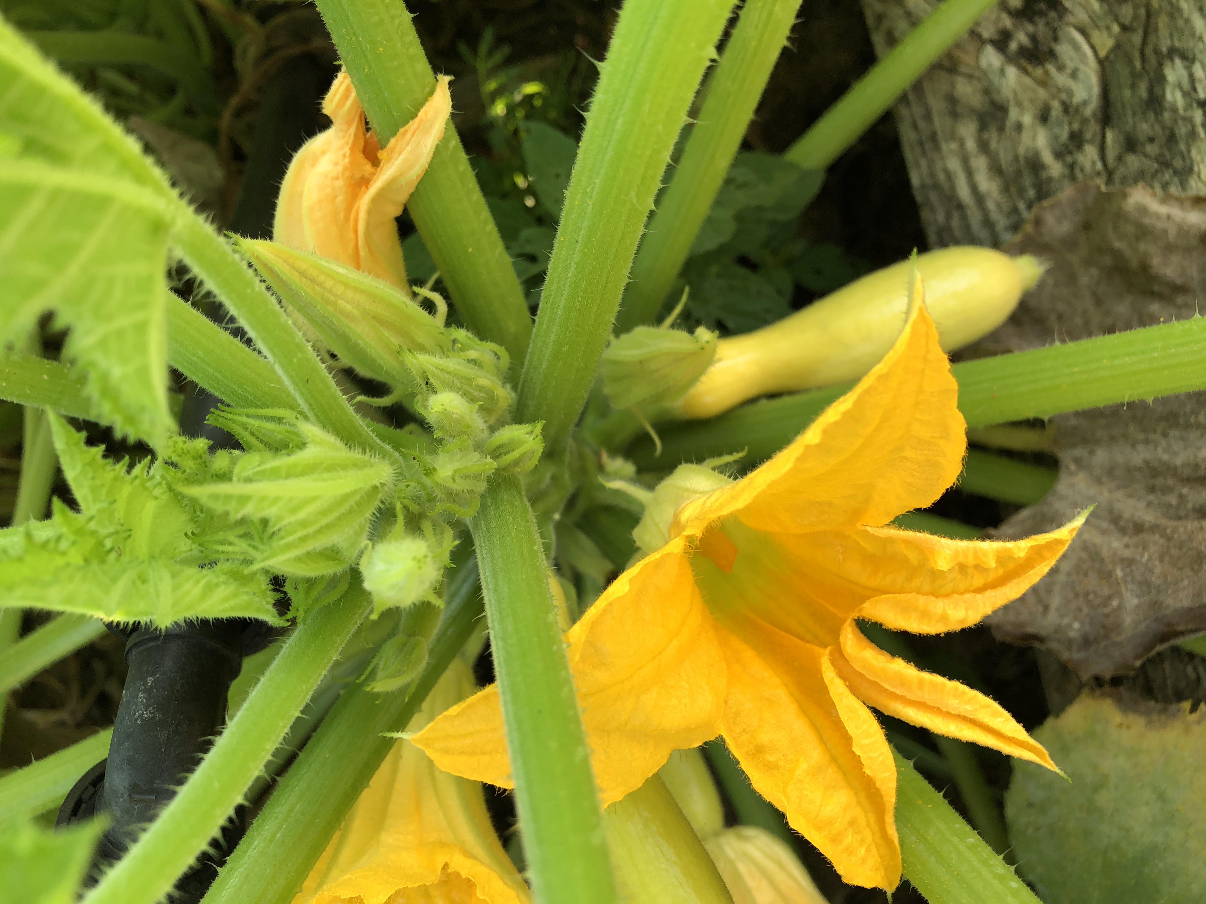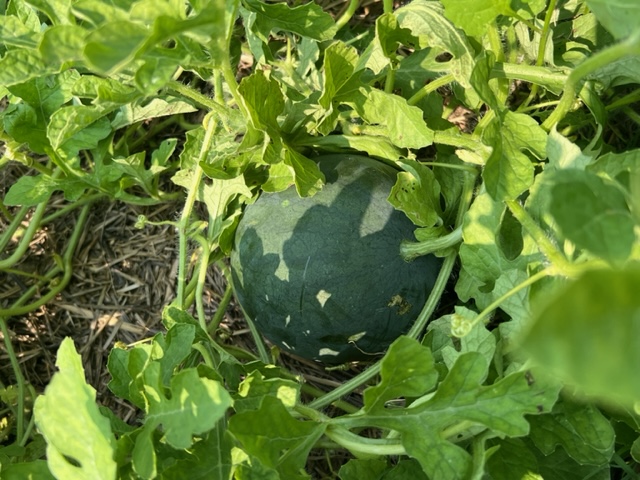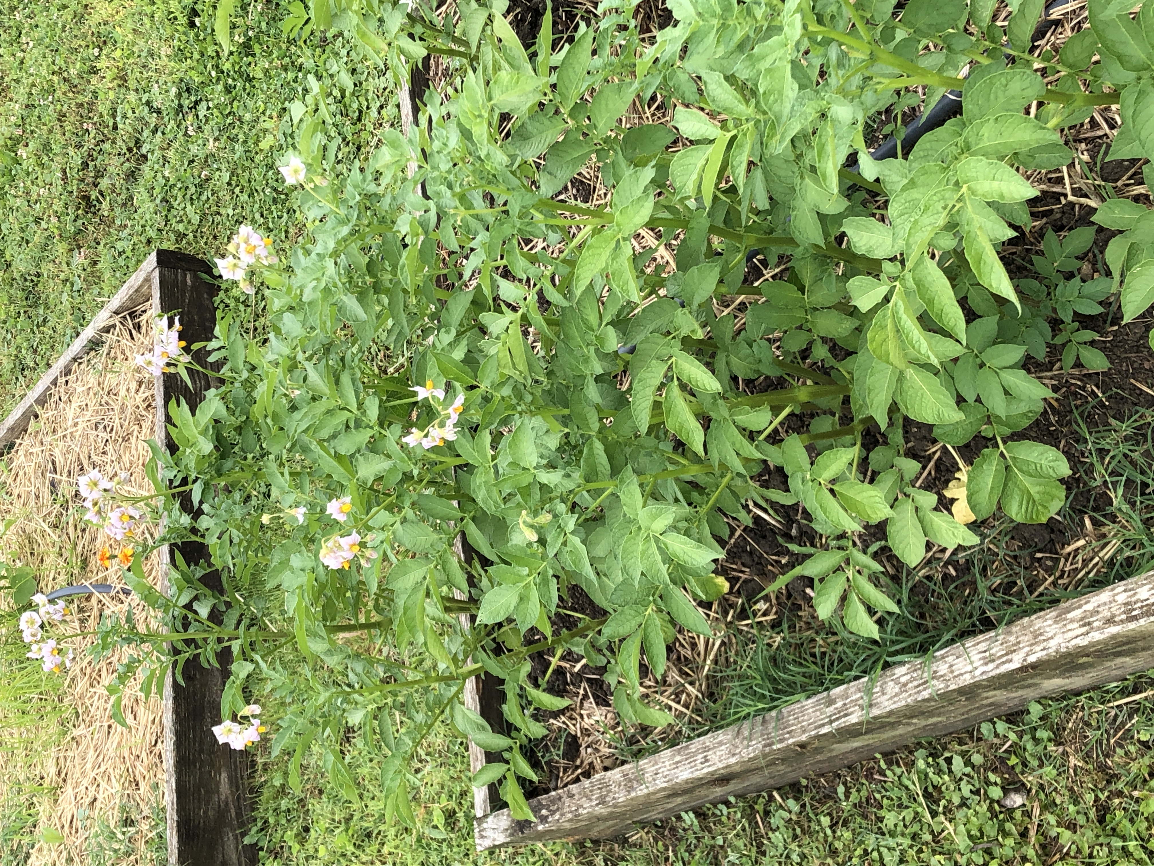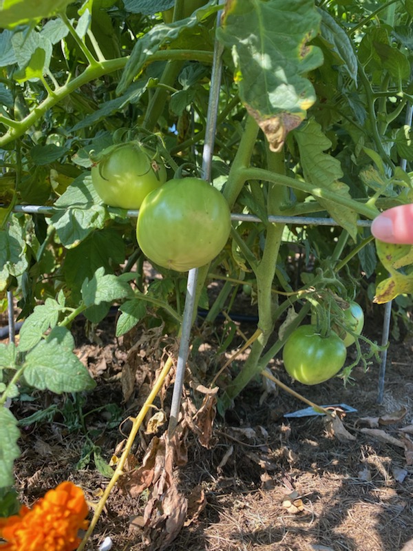 Perennial fruits include blackberries, strawberries, and grapes. Lettuce, collards and kale are planted in early spring and tomatoes, peppers, eggplants, bush and pole beans, zucchini and yellow squash, watermelons, and cantaloupes are planted in mid-May. Perennial flowers include irises, peonies, black-eyed Susans, columbines, lambs' ears, and dahlias