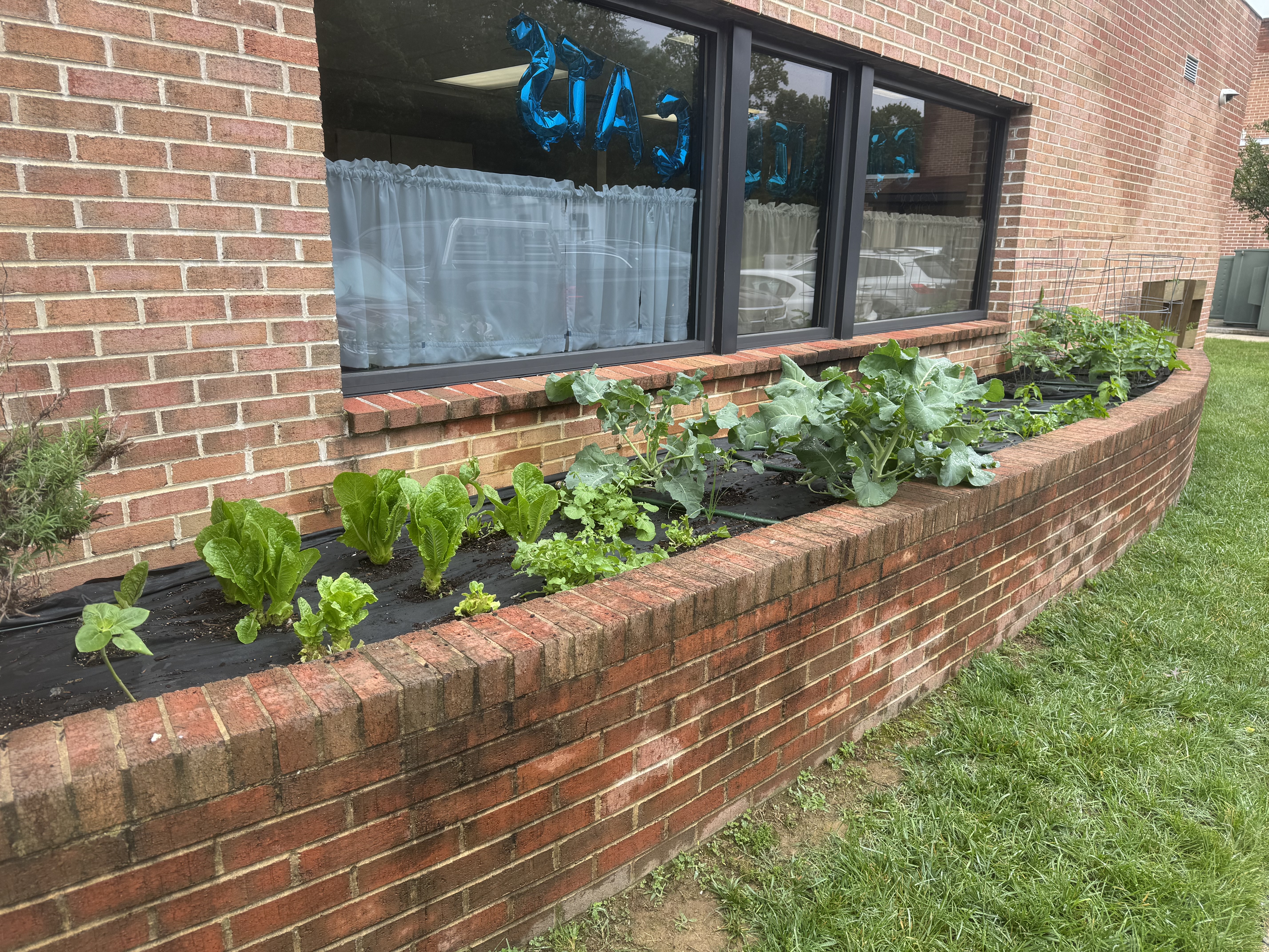 We regularly share our fresh-picked vegetables and herbs with our faculty and staff. We put our harvest to use by making fresh garden salsa using tomatoes, peppers, and herbs grown right on campus and enjoy chips and salsa at a few of our meetings.