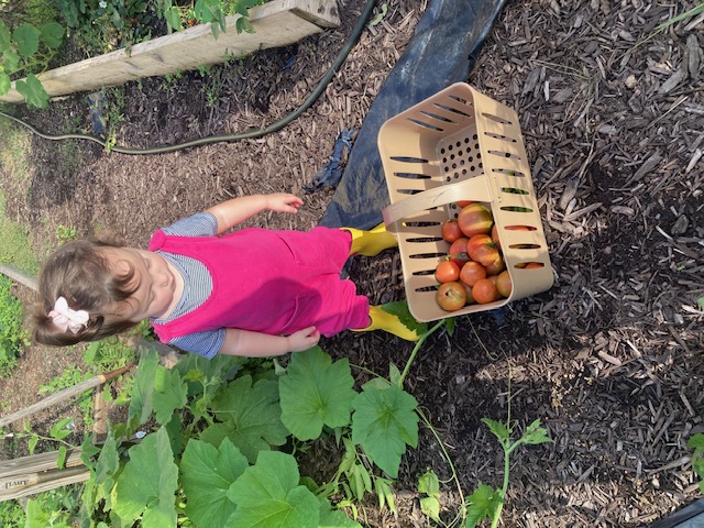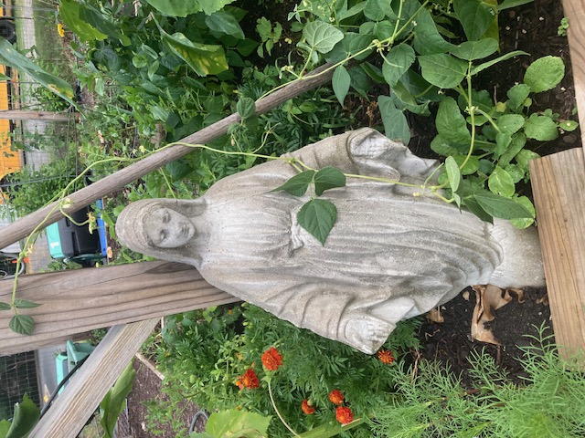 The St. Veronica garden was started around 2017 or so…I am not sure because I did not help build it initially. Then, during the covid years, nothing was planted for at least 2 seasons. The past three years I have been managing it. The initial purpose of the garden was to provide food for the food insecure. We currently take produce to the House of Mercy food bank in Manassas. However, I have found that the garden has several other important uses/contributions to parish life. One contribution is that we grow a lot of flowers, which are beautiful both in the garden and cut and displayed at home or in the church or in front of statues around the property. Another contribution we make is to the parish school. We have had several groups of children come out and work in or visit the garden for lessons over the years. We also give away a lot of produce right on site as a way of fostering community at St. Veronica. The garden is very close to the parish office, and if someone is in the garden working, the volunteer is likely to have have folks stop by to say something or ask questions. We give away food and flowers to these individuals all the time. We really want people to feel like it is their garden and does not belong to just a few volunteers. We also give away produce to the staff at the church: our priests, the teachers, the office staff, the maintenance staff, etc. For those who volunteer, the garden is a place of peace, for the most part. A lot of gardening takes place early in the morning or later in the evening, both wonderful times to reflect and enjoy God’s many gifts to us and to our parish. We have several nice statues of Mary in our garden, and she is always with us while we work.