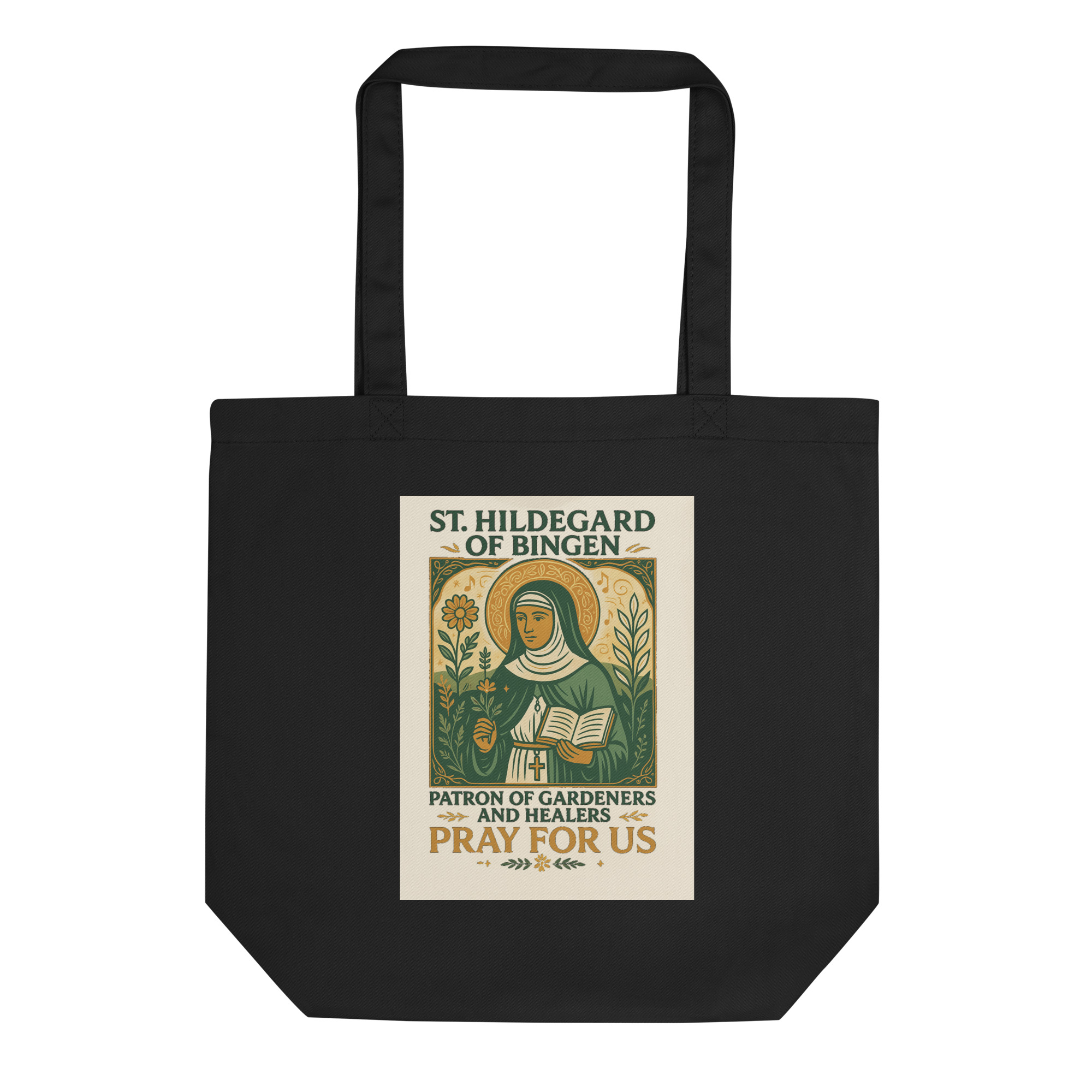 This organic cotton tote features St. Hildegard of Bingen—patron of gardeners and healers—offering a daily reminder to care for creation with wisdom and grace. Spacious and sustainably made, it’s perfect for errands, garden harvests, and everything in between.